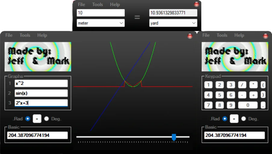 TI-84-like calculator with custom GUI, ahead of its time with touchscreen vision.
